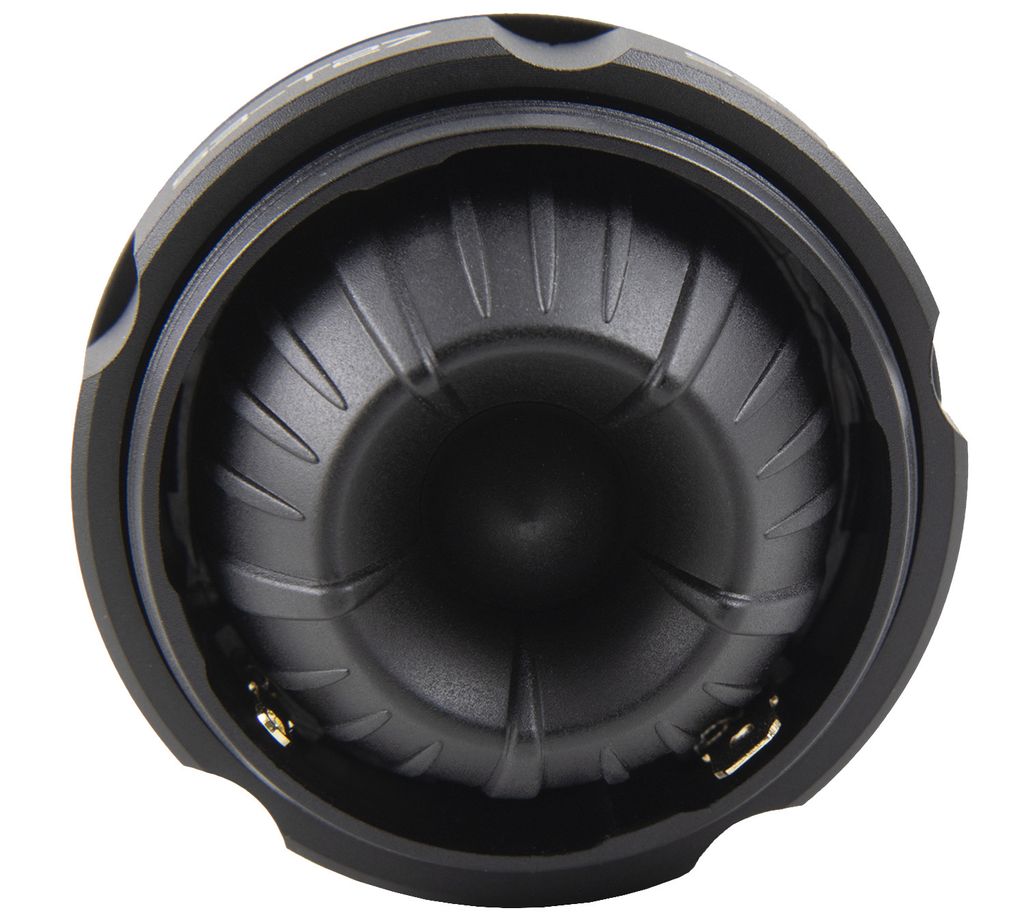 - Svart aluminium‑ och papperskompositkon (woofer) med gummilist