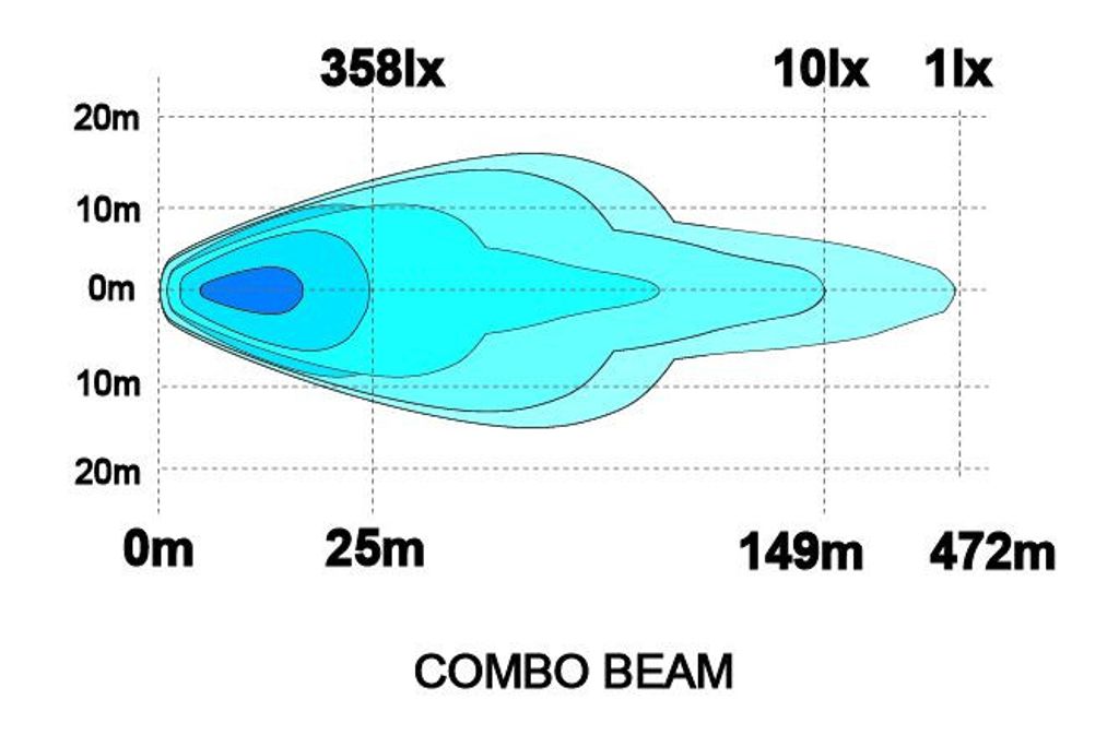 En kombinerad ljusbild är en blandning mellan fjärrljus (avstånd) och flodljus (bredd). Rampen har dioder som reflekterar ljus både rakt fram och åt sidorna. Denna ljusbild är ideal om man vill ha mycket ljus nära fordonet för de mindre vägarna men ändå ha längden för att lysa upp vägen långt fram.