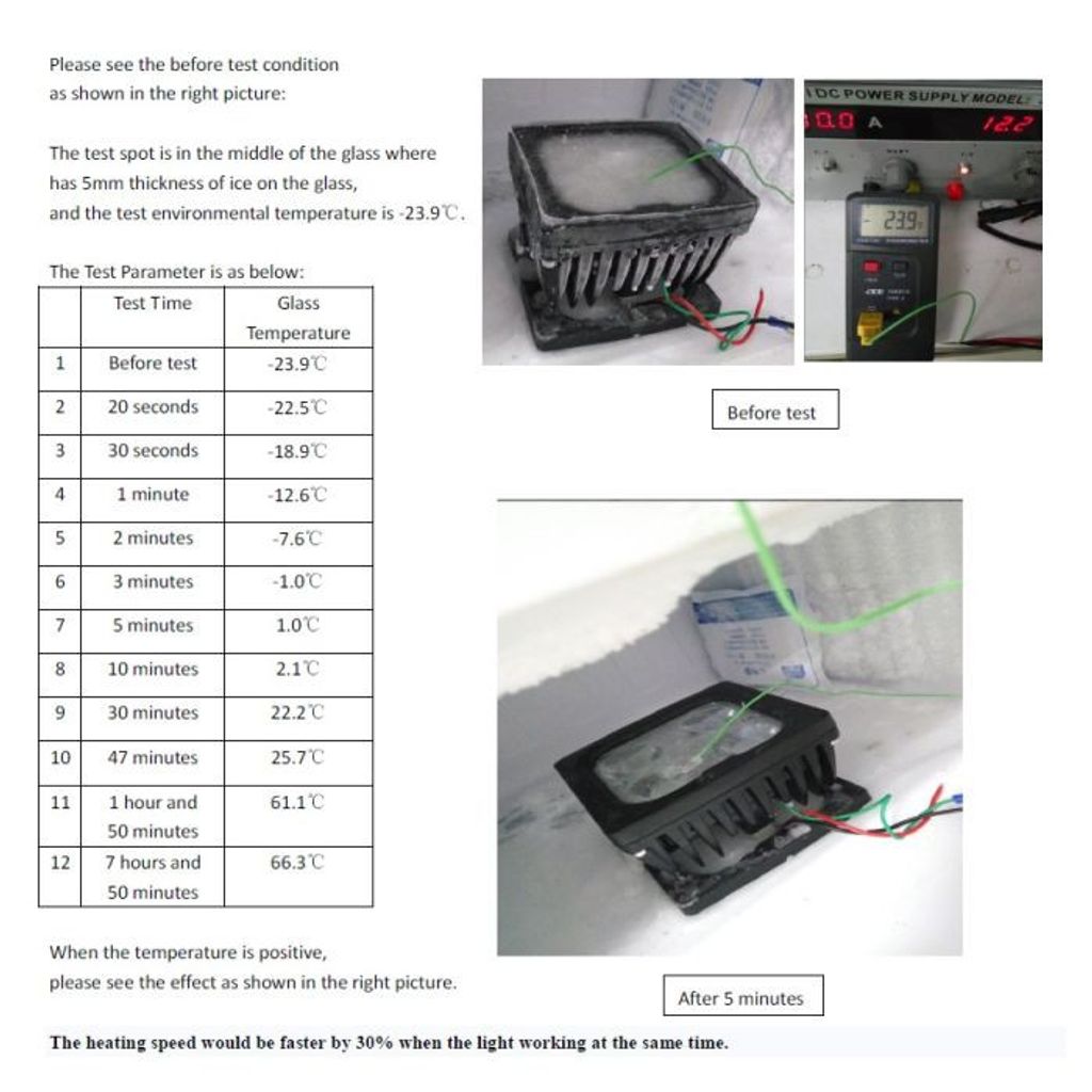 - Patenterat system för att smälta bort is och snö (glas med uppvärmning, värmelins)
