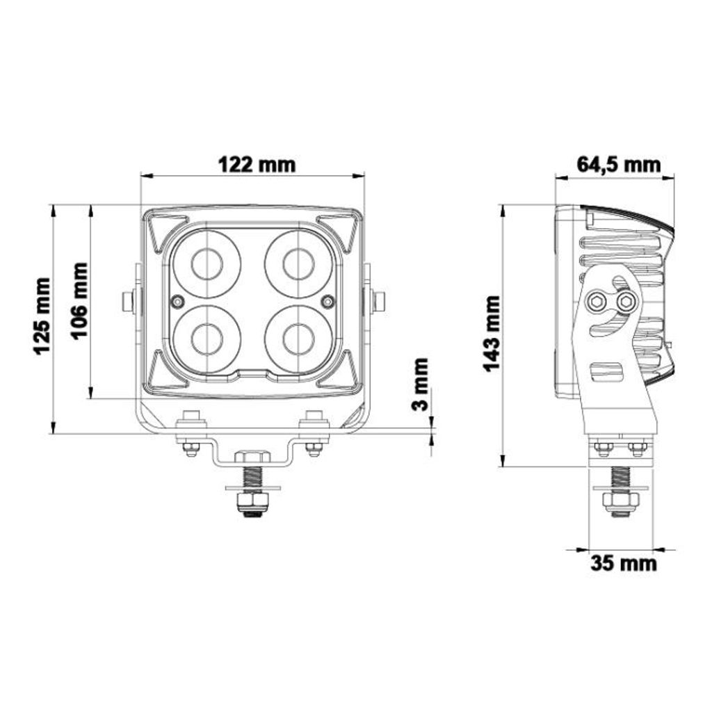 LEDSON Blaze har patenterat glas med uppvärmning (värmelins) för att smälta bort is och snö! Därtill EMC-säkrad CISPR25 Class 5 & R10 vilket ger denna LED-arbetsbelysning ett superbt EMC-skydd. IP69K-klassning, TIR-reflektorer (mer om dessa nedanför), 5402 lumen som ger 1 lux vid 87 meter.