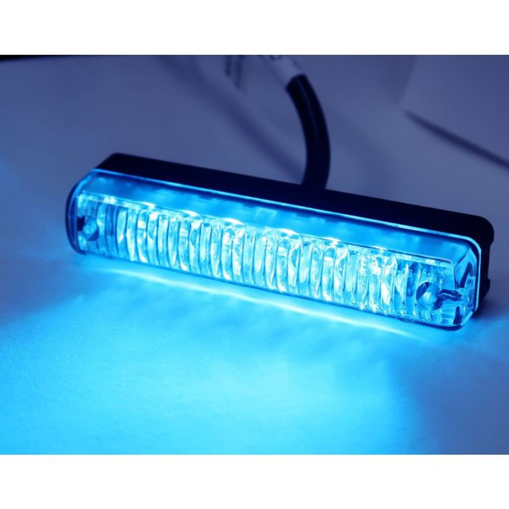 LED-blixtljus med orange eller blått ljus och 2,5 meter kabel, avsett för grillmontering. E-godkänt ECE R65 klass 2, SAE klass 1 samt EMC-säkrat R10.