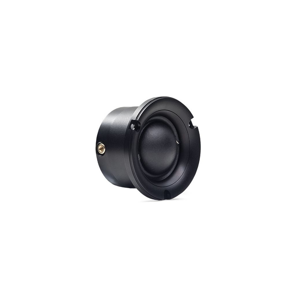 Membransystemet drivs av en kraftfull neodymmagnetmotor med kopparkortslutningsring. Motorn är monterad i en dubbelbalanserad kompressionskammare som förbättrar transientdynamiken över ett brett frekvensområde. De interna flödesoptimerade ventilationskanalerna och bafflarna eliminerar stående vågor mellan kammarna och kopplar samman luftmassorna, och i kombination med high-roll-surrounden möjliggörs en ultralåg Fs på 675 Hz. Den lasergraverade backplaten och grillen med stort hexagonmönster fulländar estetiskt denna soniskt imponerande diskant.