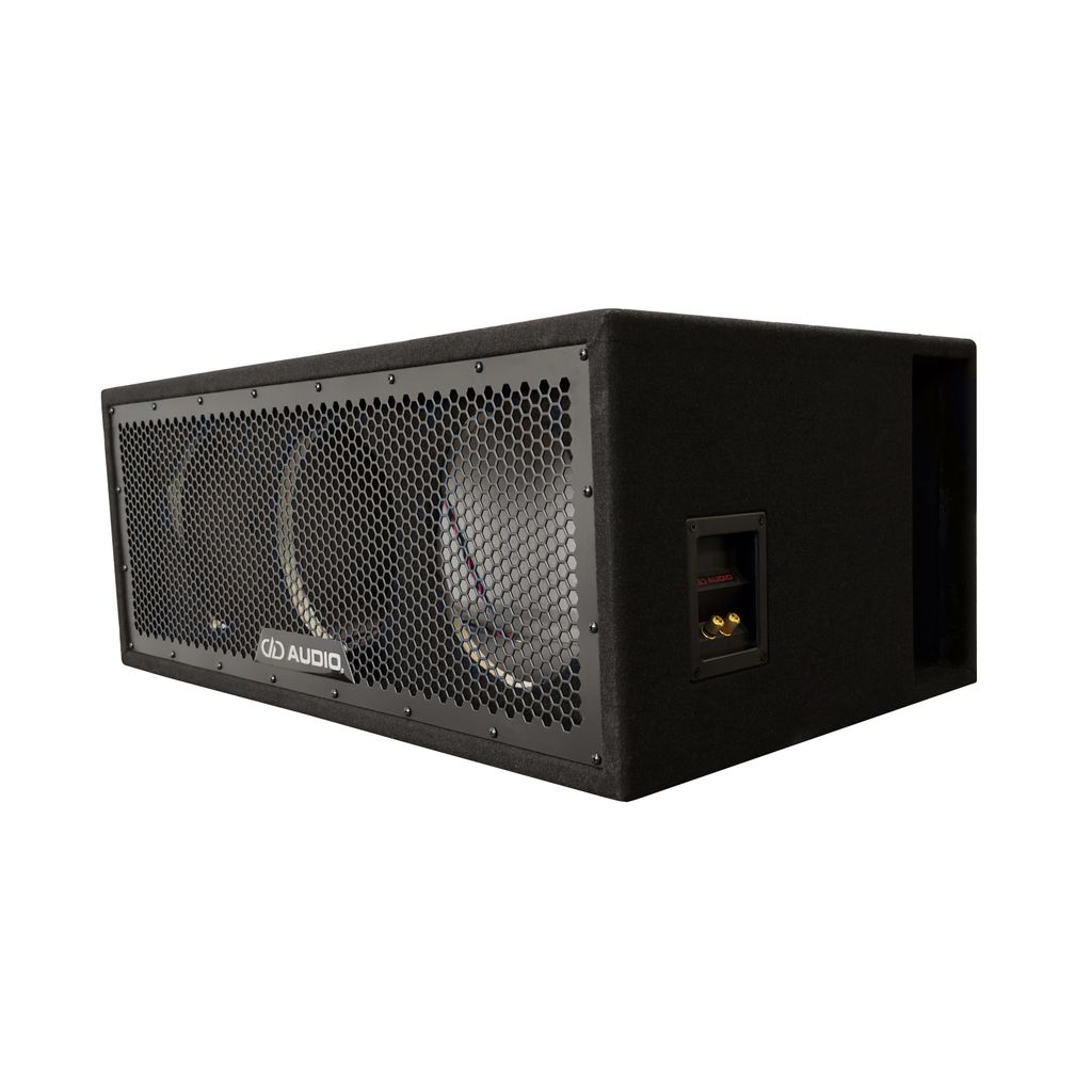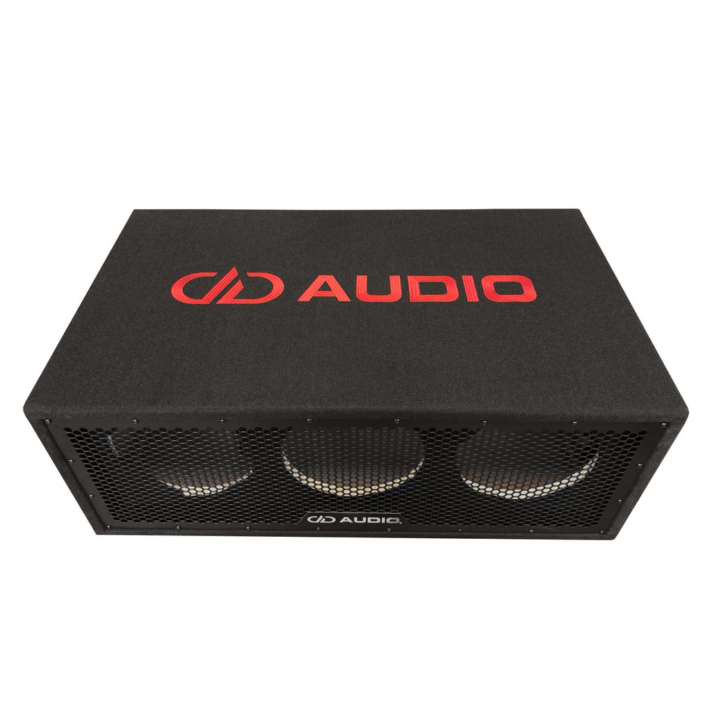 Ny DD Audio triple 10″ oladdad låda. Den stora DD‑avstämda rektangulära porten är sidofyrad för optimal akustisk belastning över hela effektområdet. MDF‑konstruktion med plywoodfront.