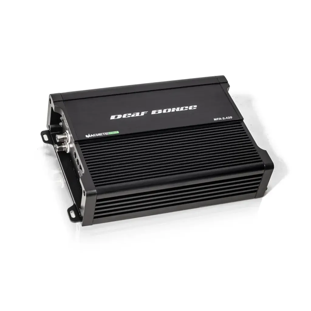 Apocalypse MFA-2.420 är ett kraftfullt 2-kanaligt KlassD slutsteg som imponerar med sin kompakta design och enastående prestanda. Detta slutsteg är perfekt för dig som vill uppnå en extremt hög ljudnivå med kraftiga midbasar. Med hela 2x630W rms vid 2 ohm (vid 14.4V) kan du driva upp till 4 stycken 4 ohms midbasar med full kraft.