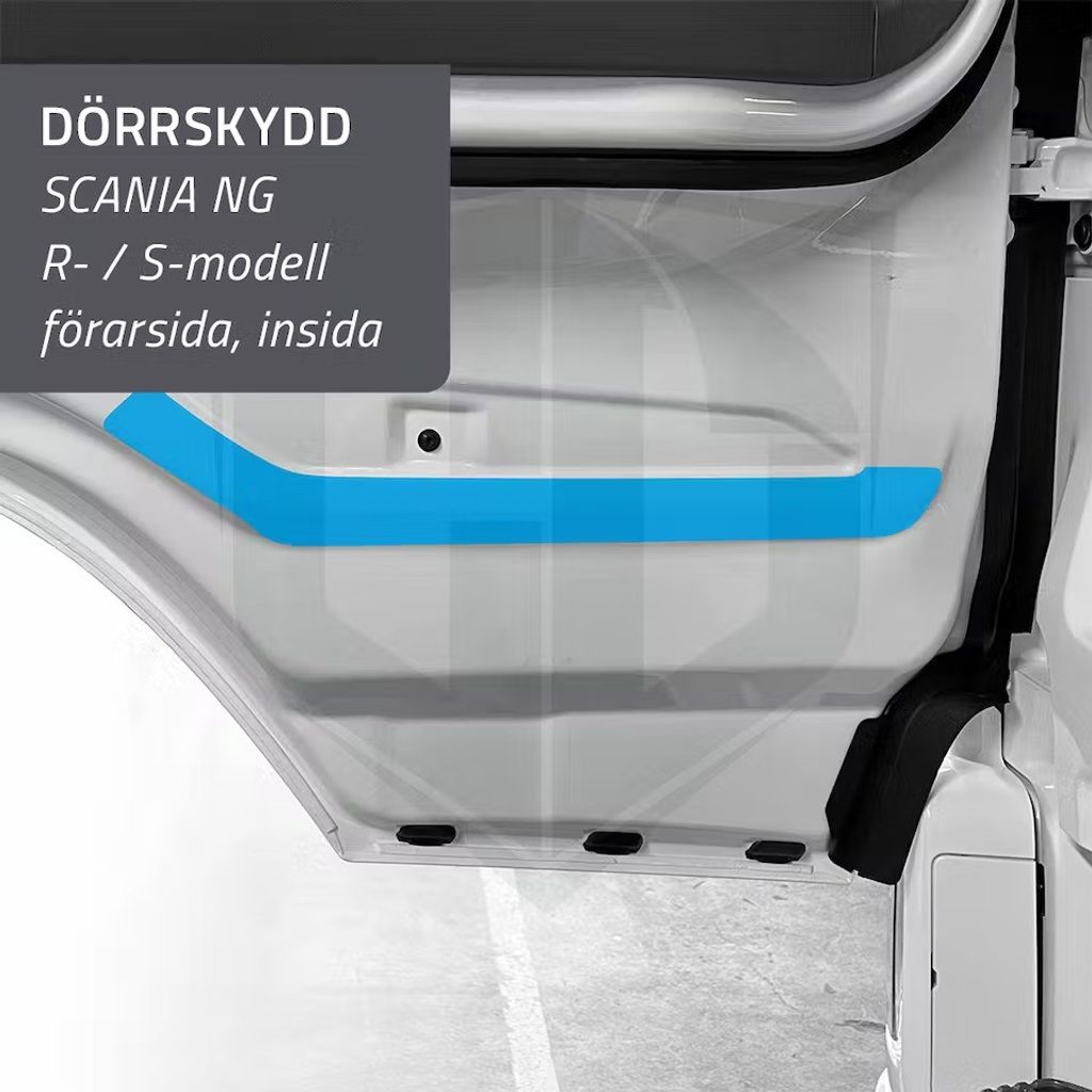 Dörrskydd till Scania Next Generation R- och S-serien. Skyddar insidan av dörren mot repor från skor och handskar.
