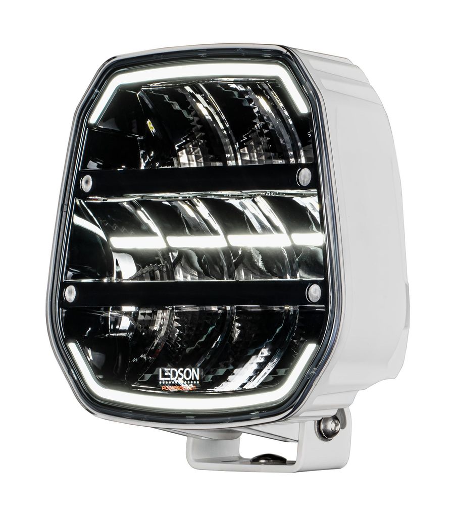 - Ett Ledson Epix9+ Strobe LED-extraljus 9" vit design