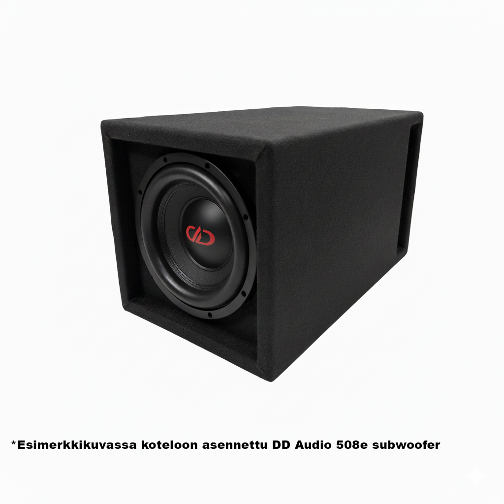 Obs! Kabinettet är utformat för subwoofrar med plåtram; monteringshålet är därför 185 mm. De flesta gjutna ram‑subwoofrar passar inte detta kabinett.