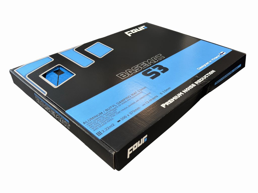 BASEMAT STAGE3 är en 3,0 mm tjock dämpmatta som kan användas för att dämpa alla metallytor i bilen. Materialet är ett butylgummi‑komposit med aluminiumytbeläggning som förbättrar dämpningen samtidigt som den skyddar och förstärker produkten.