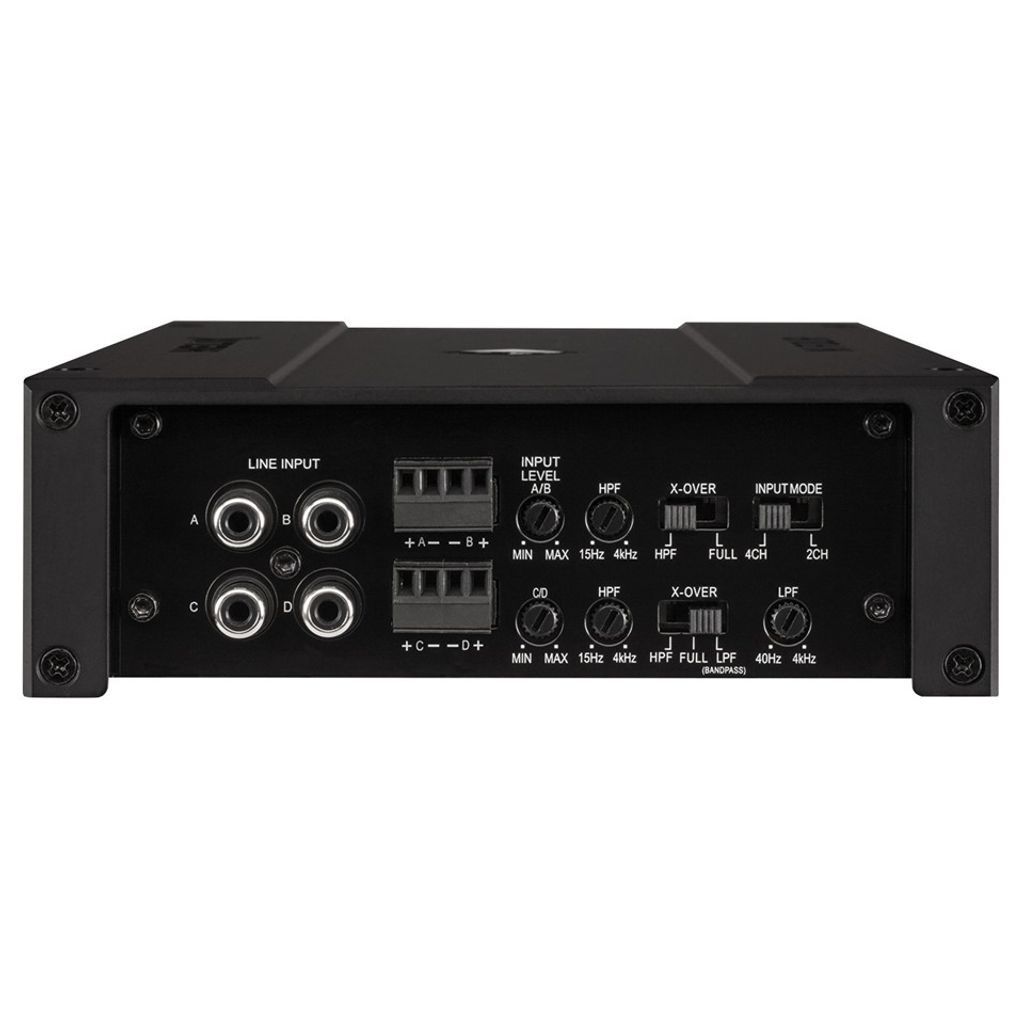 Förstärkaren kan köras i olika konfigurationer – 4-kanal, 3-kanal eller 2-kanal. I bryggkopplat läge ger den upp till 2 x 200 W RMS med ren och oförvrängd uteffekt. En mångsidig lösning för alla som vill bygga ett starkt och balanserat system.