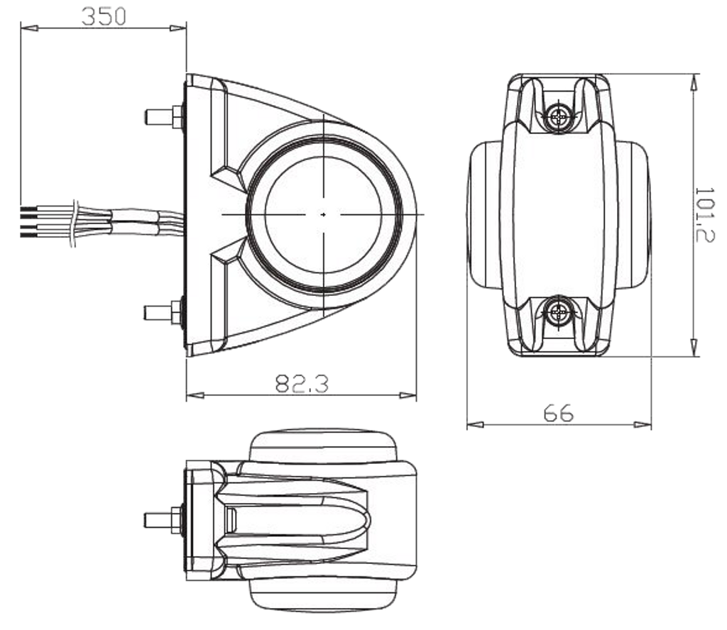 Komplett sidomarkering i gummi med vitt ljus fram och rött ljus bak. 82x101x66mm. E-godkänd.