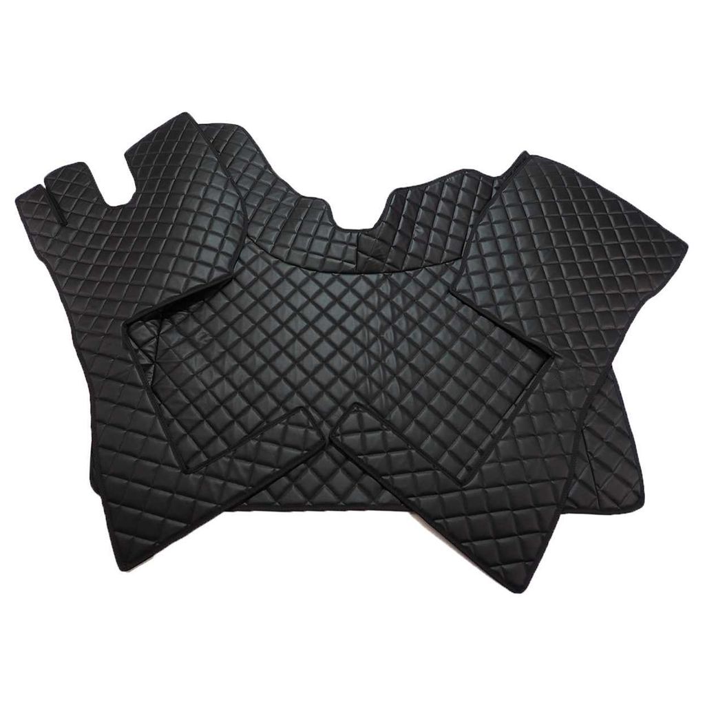 Komplett set med golvmattor och motortäcke i slitstarkt konstläder med rutmönster och 10 mm dämpande skum.