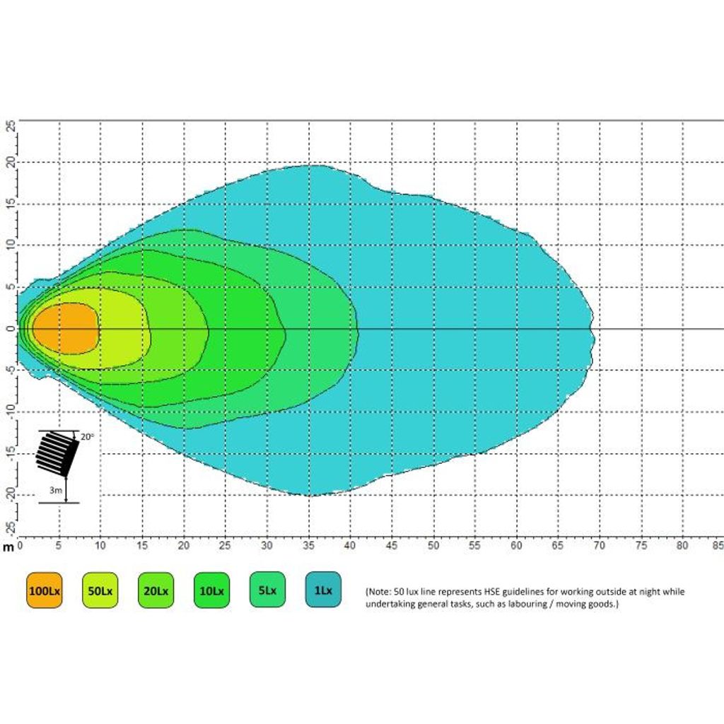 En lampa ger 4300 lm (uppmätta, ej beräknade!) i den behagliga ljusfärgen 5000K. Det är mestadels vitt ljus, med aningens blåstick utåt kanterna, och optimerat för att förbättra sikt och förminska ögontrötthet.