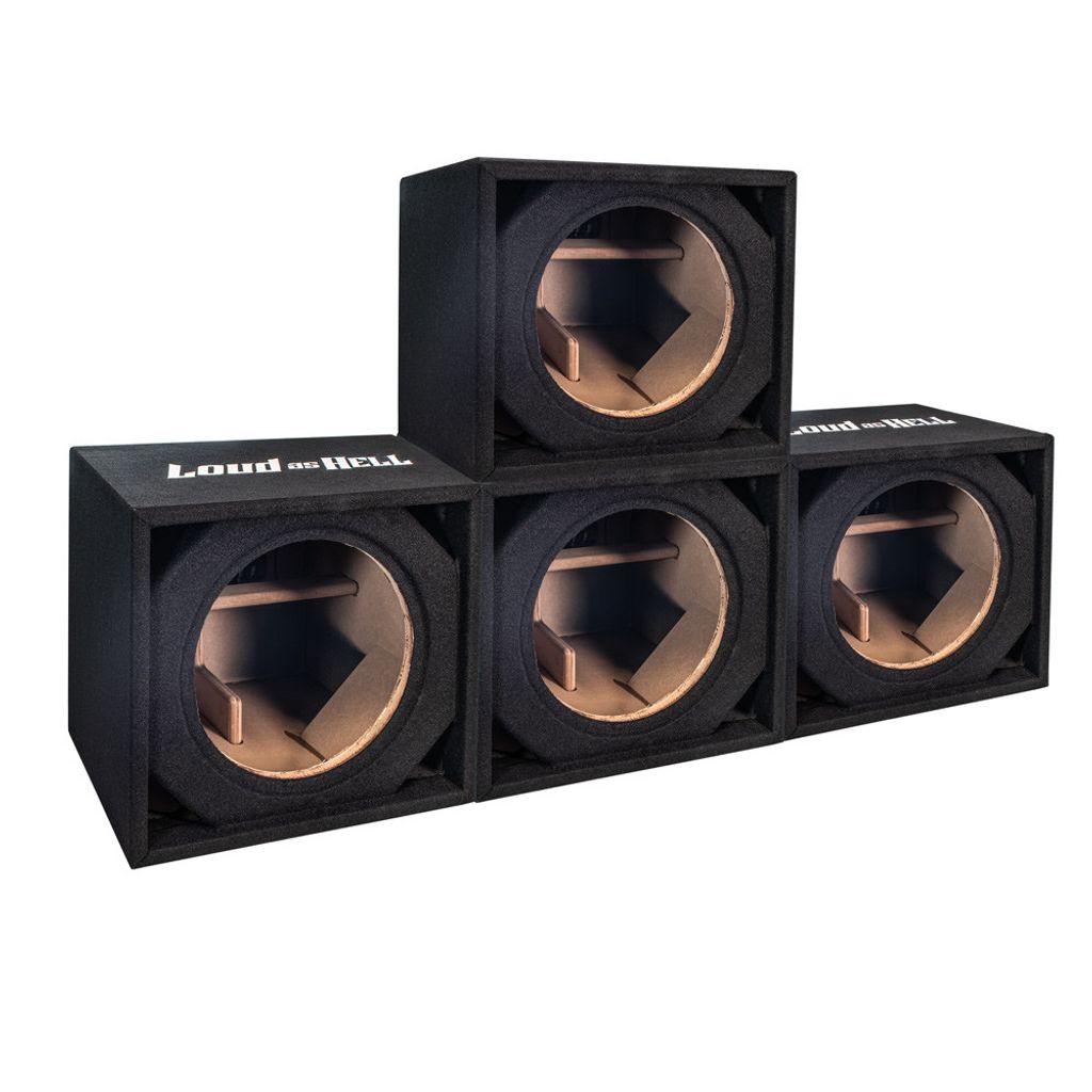 På toppen sitter den broderade Loud as Hell-logotypen – en tydlig markering av att detta är en låda för dig som bygger för att höras. Den rena, symmetriska formen gör att lådorna ser lika bra ut enskilt som i större uppsättningar.