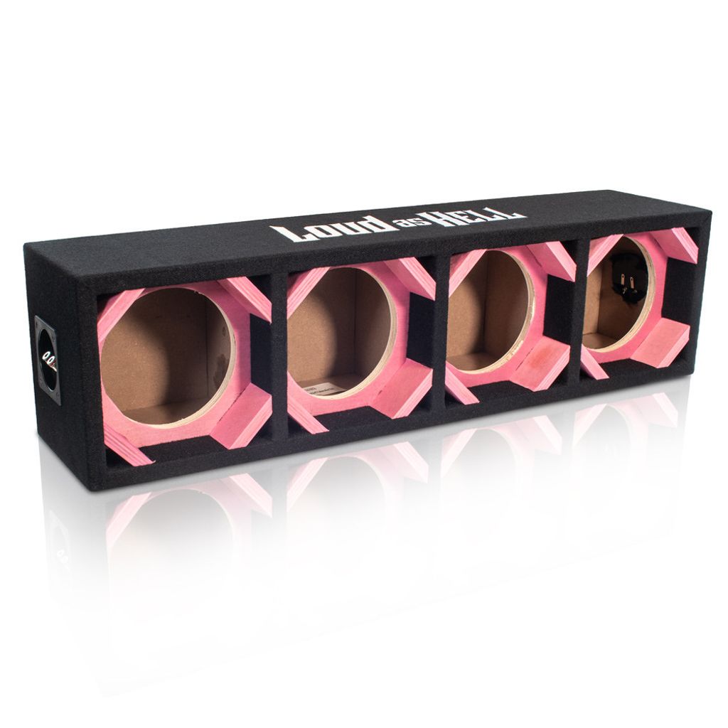 LOUD AS HELL 4x6.5" Kickplanka Rosa är en portad kickbass-låda för fyra 6.5-tums midbasar, utvecklad för att leverera snabb respons, tydlig mellanbas och ett uttryck som verkligen sticker ut. Den kompakta konstruktionen gör den perfekt för installationer där du vill kombinera färg, form och funktion i ett och samma bygge.