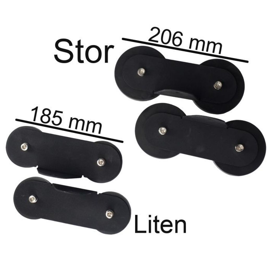 Det som skiljer modellerna åt är dubbla antal magneter i varje fot (högre magnetstyrka) samt fotens storlek - 8,7 cm (stora) och 6,5 cm (lilla).