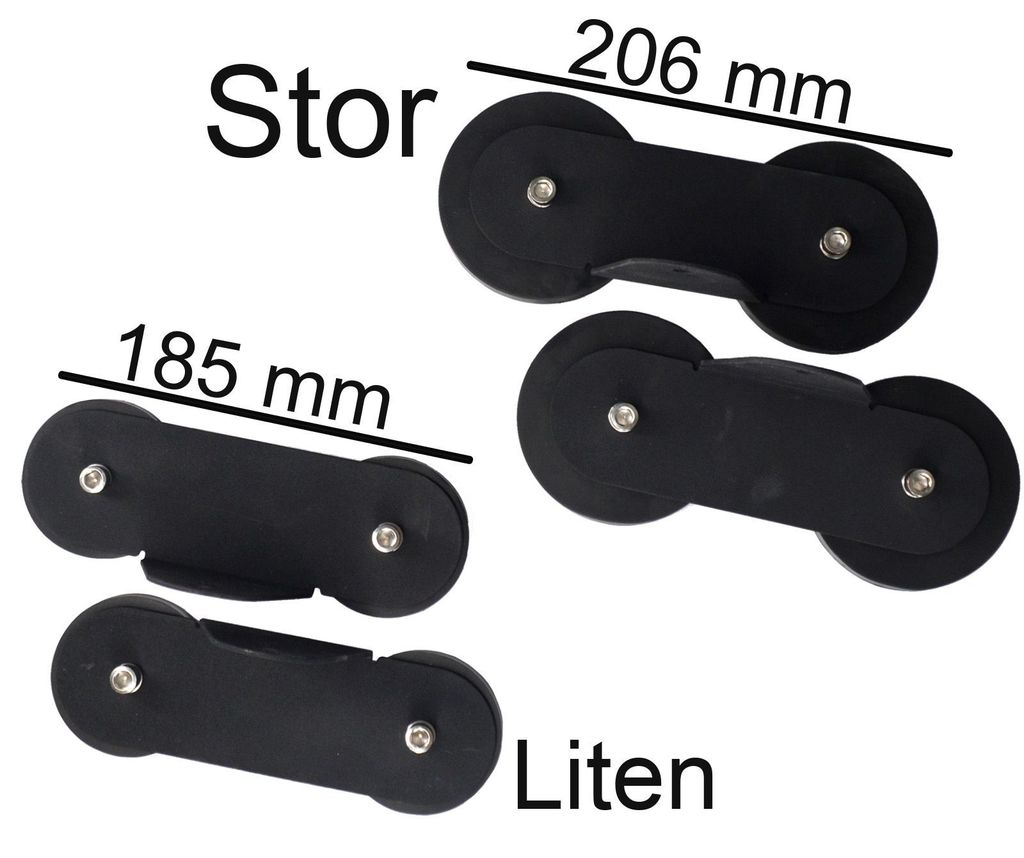 Det som skiljer modellerna åt är dubbla antal magneter i varje fot (högre magnetstyrka) samt fotens storlek - 8,7 cm (stora) och 6,5 cm (lilla).
