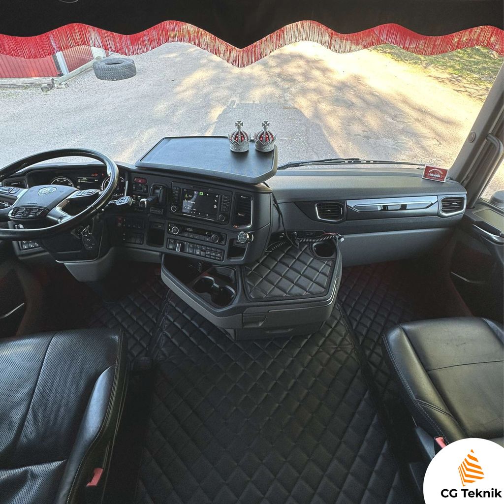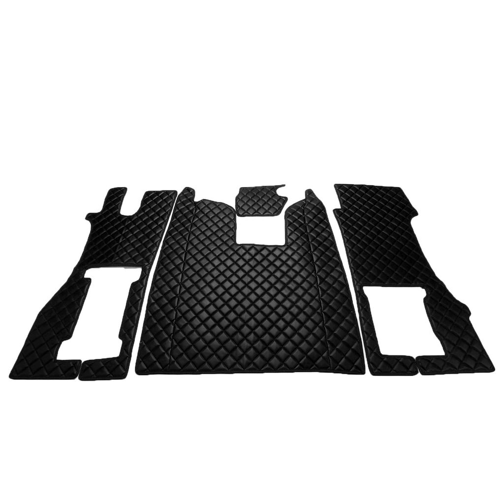 Komplett set med golvmattor och motortäcke i slitstarkt konstläder med rutmönster och 10 mm dämpning.