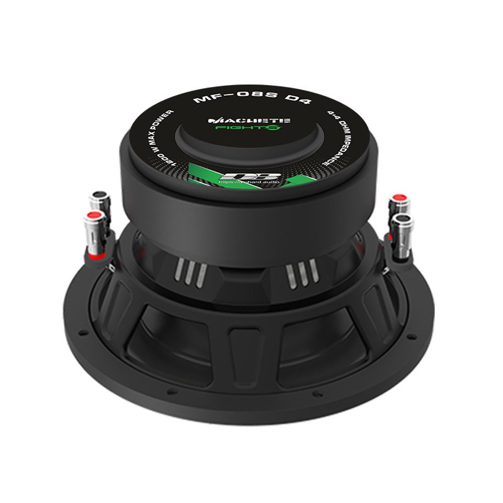 En trevlig 8" subbas som verkligen kan prestera bra ljudtryck och låter bra till ett bra pris. Med hjälp av en dubbelstackad magnet med dubbla 2" talspolar så har basen en RMS effekt på hela 600W