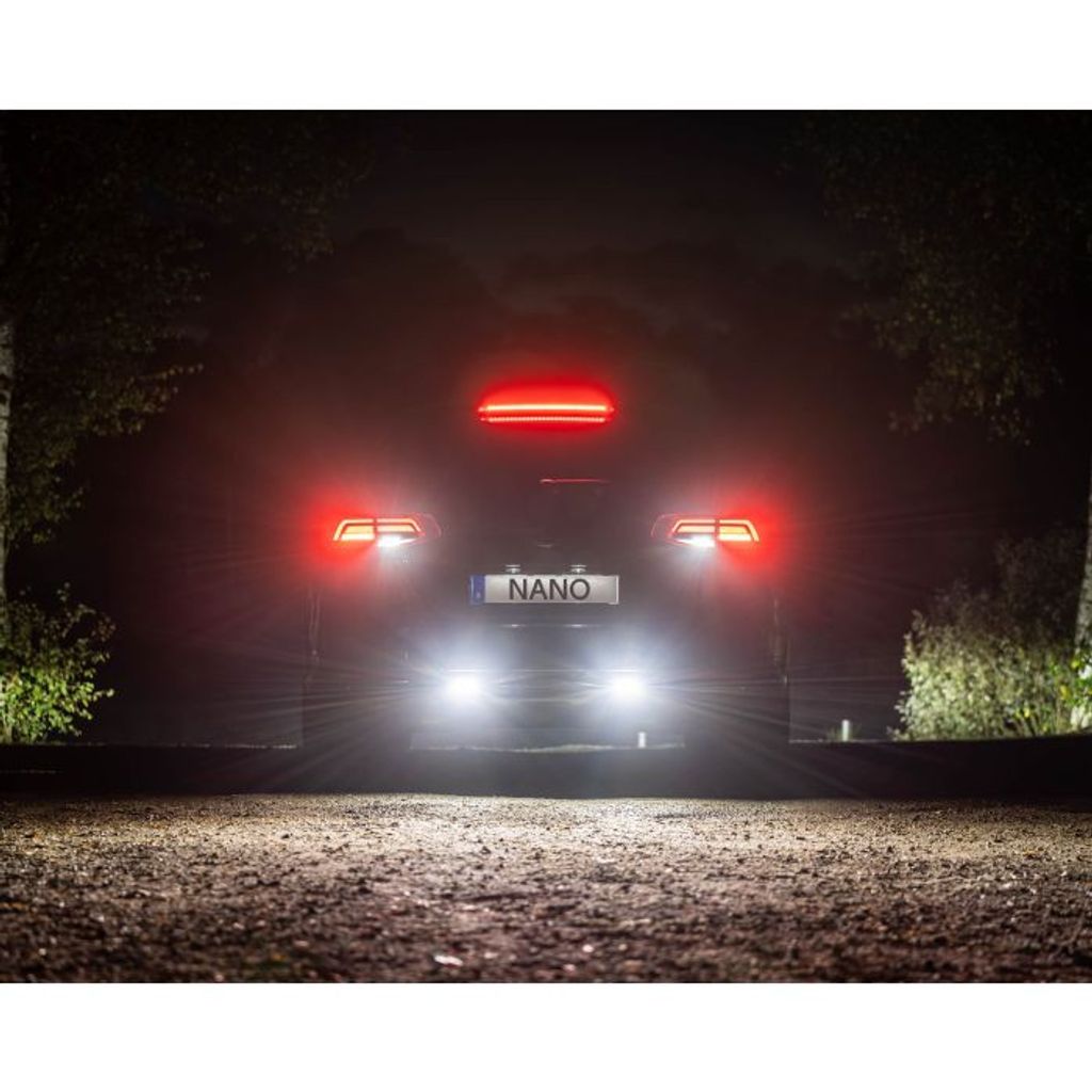 Vi rekommenderar vårt backljuskablage med 2 x DT för en enkel inkoppling av två stycken Nano till ditt fordon.