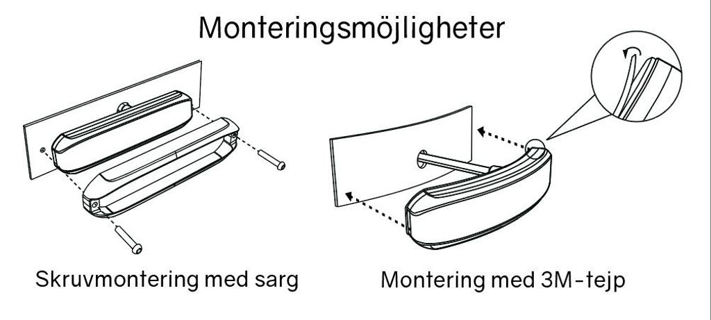 - Kan också monteras på plana ytor - skruvas fast med medföljande sarg