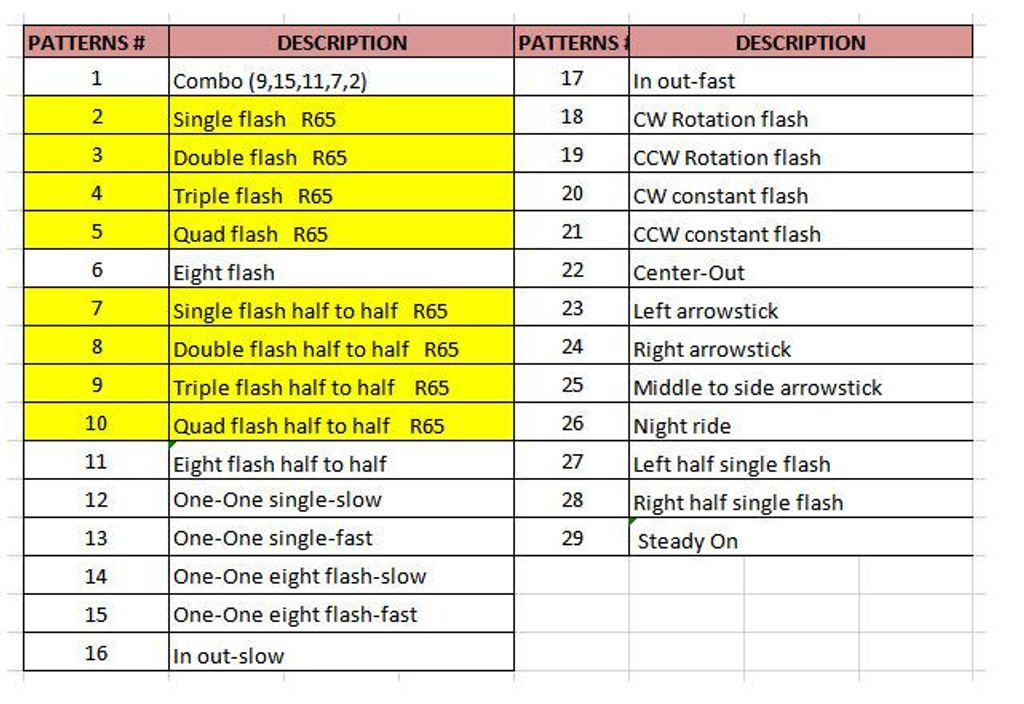 4-ledad kabel (löst kablage) och 1 x R65 klass 2 blixtljusmönster: