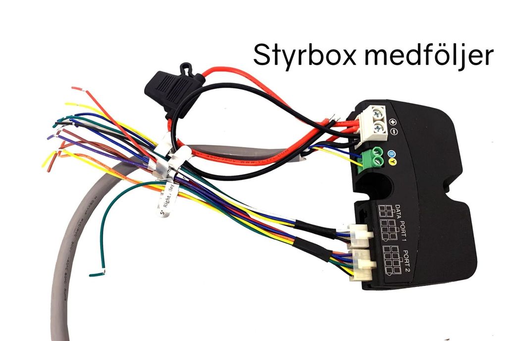 - Inkoppling: Direkt via medföljande 3 meters-kablage med tillhörande kopplingsbox till separata strömställare (extra tillbehör) för att styra enstaka funktioner eller via medföljande fjärrkontroll som på ett enkelt och överskådligt sätt kan utnyttja samtliga 29 blixtljusmönster.