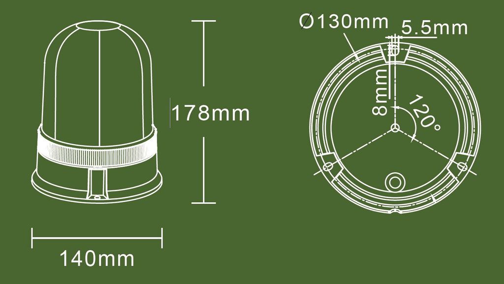 Beskrivning av OptoGuard Dome Blixtljus roterande LED 36W