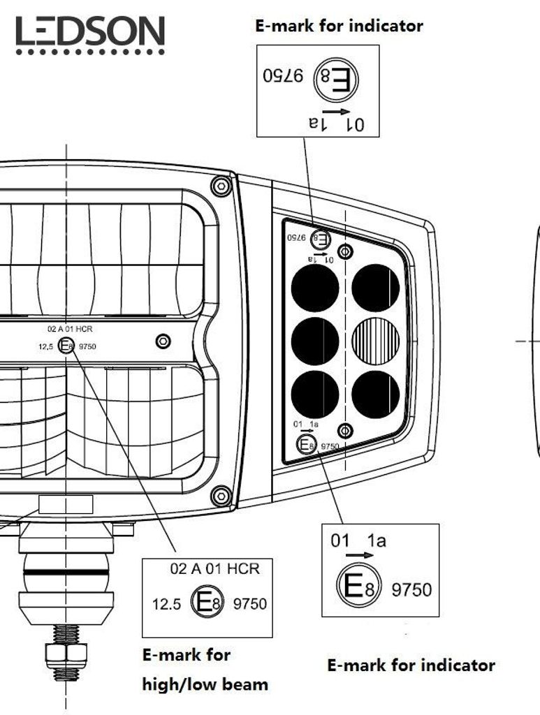 - E-märkt ECE R112/R7/R10/R6 (E8) - Läs mer om E-märkningar här