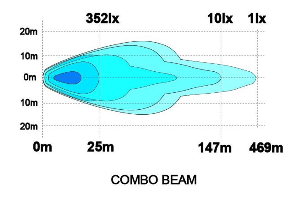 En kombinerad ljusbild är en blandning mellan fjärrljus (avstånd) och flodljus (bredd). Extraljuset har dioder som reflekterar ljus både rakt fram och åt sidorna. Denna ljusbild är ideal om man vill ha mycket ljus nära fordonet för de mindre vägarna men ändå ha längden för att lysa upp vägen långt fram.