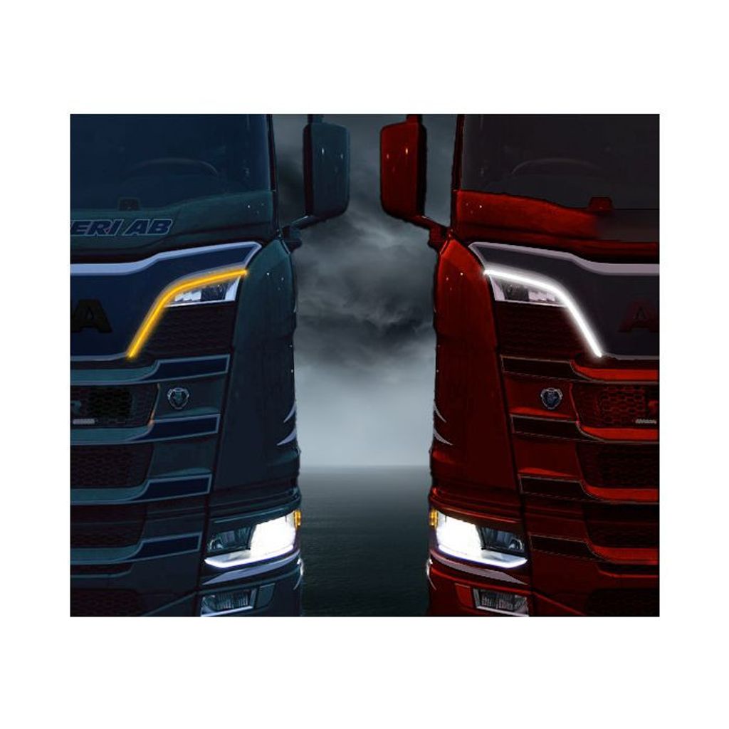 Xenonvit och orange har 72 st LED. Det finns också en version med 160 st LED som går att ställa antingen xenonvit eller orange ljus.