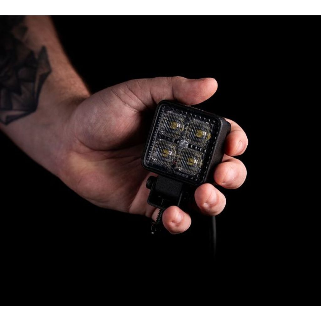 Tiny arbets- och backljus levererar imponerande prestanda i ett kompakt format. Trots sin lilla storlek erbjuder Tiny en räckvidd på 40 meter och en 75° bred ljusbild, perfekt för trånga utrymmen.