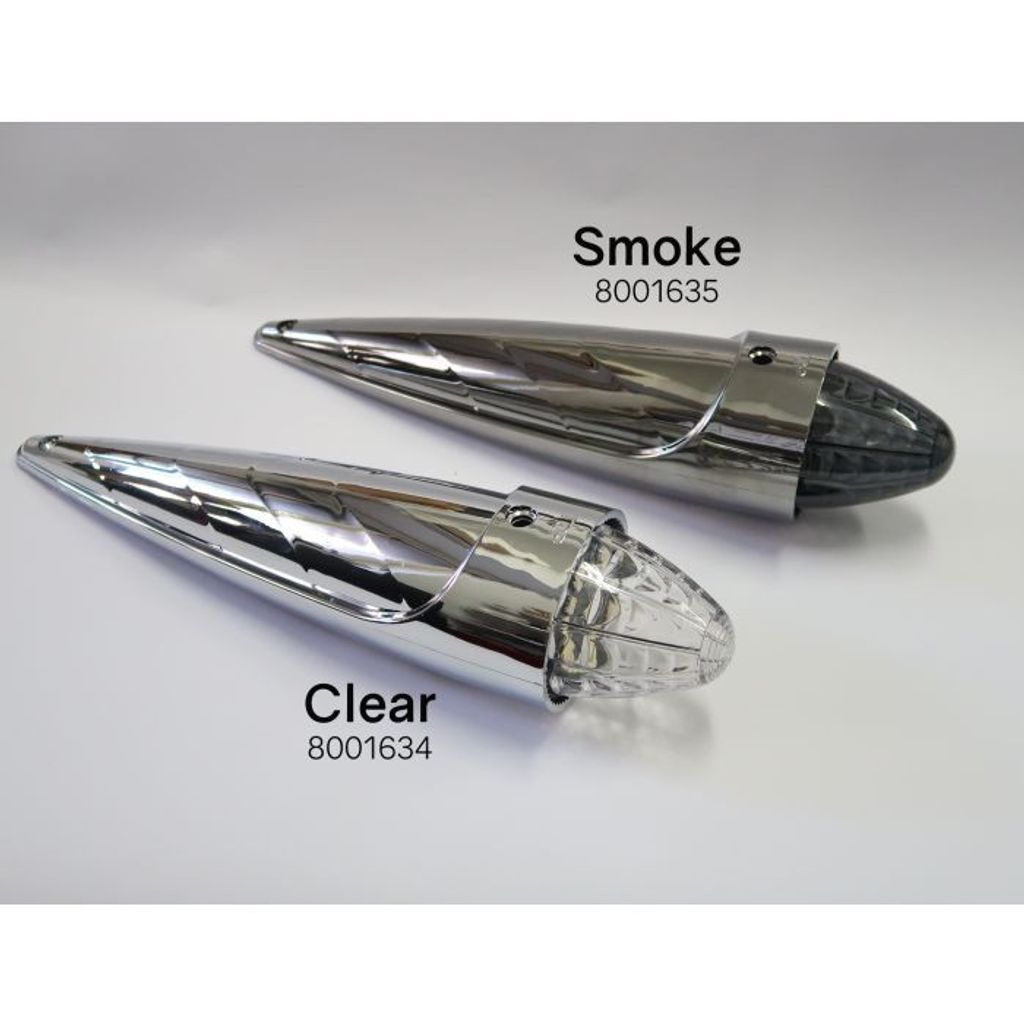 - Kromat hölje med klar lins eller mörktonad krom med smoke lins